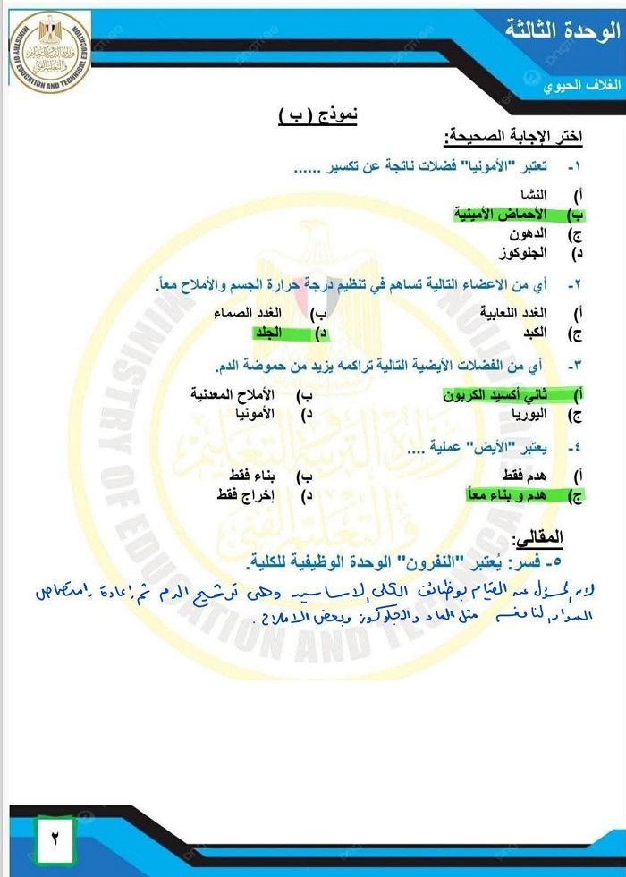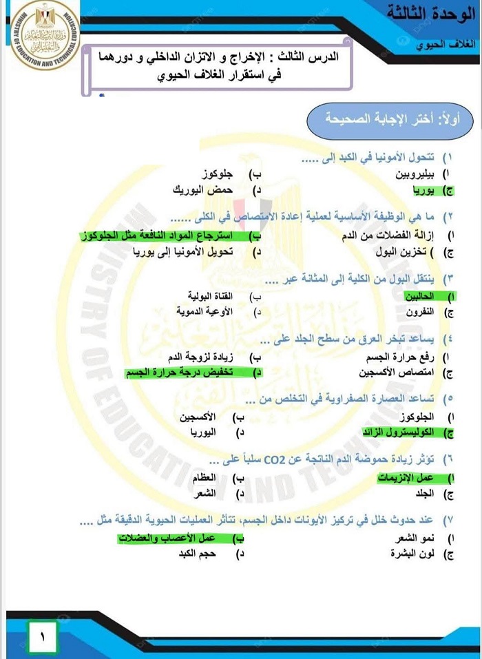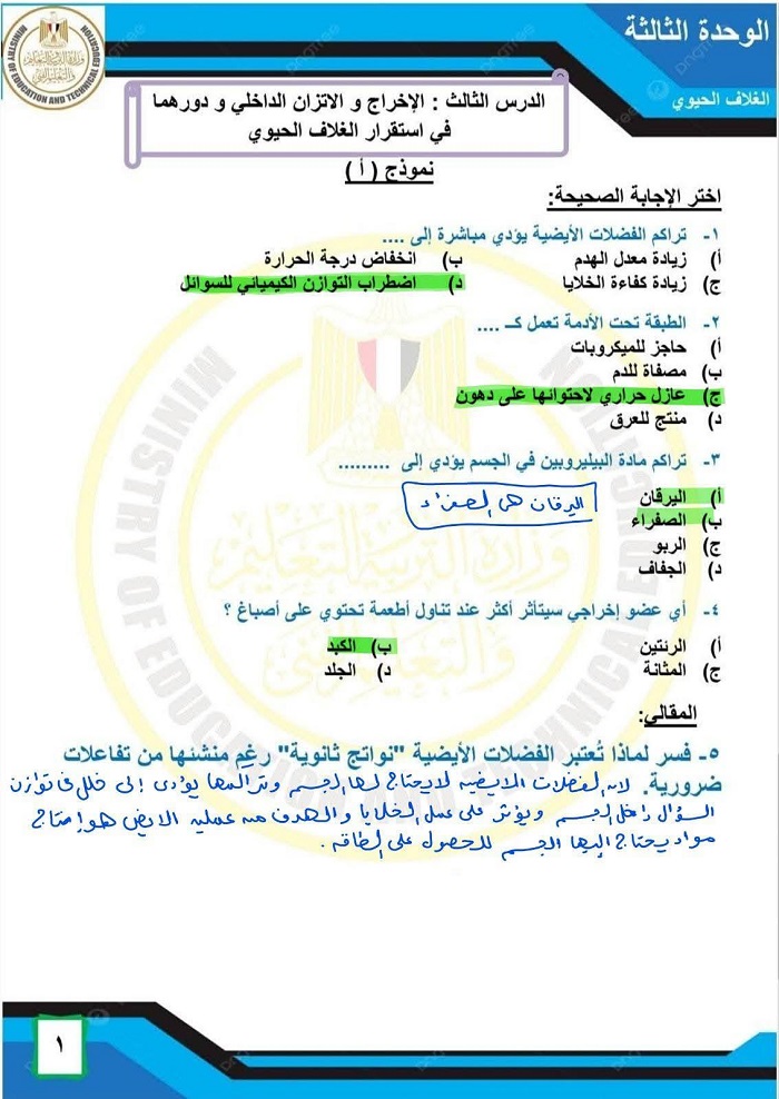 بالشرح والحلول.. التقييم الأسبوعي الخامس علوم متكاملة أولى ثانوي ترم ثاني