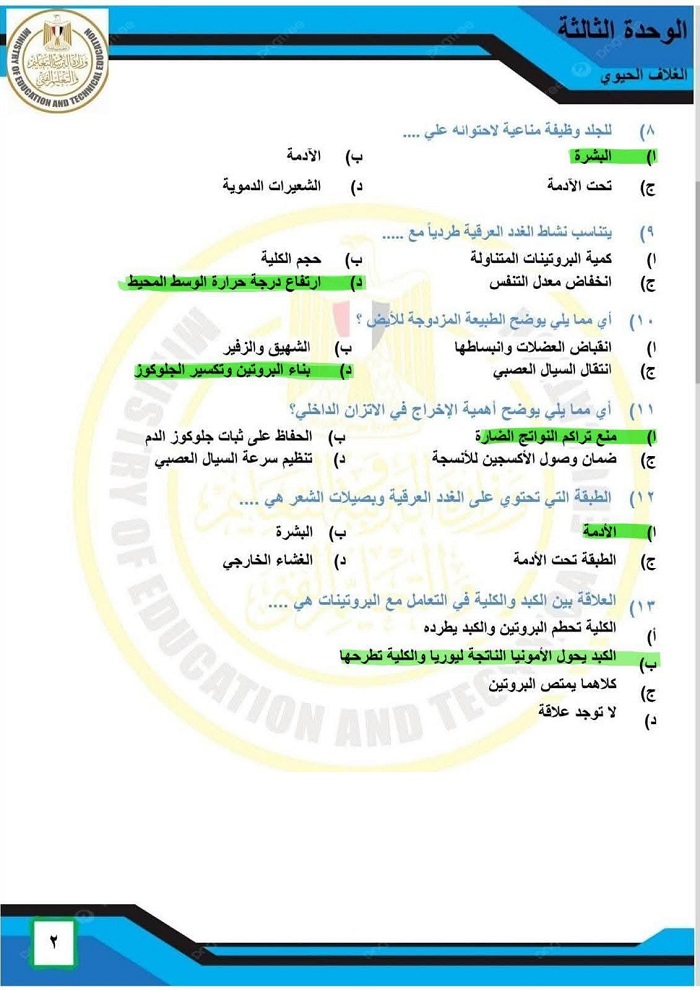 مراجعات نهائية في مقرر الفصل الدراسي الثاني في العلوم المتكاملة