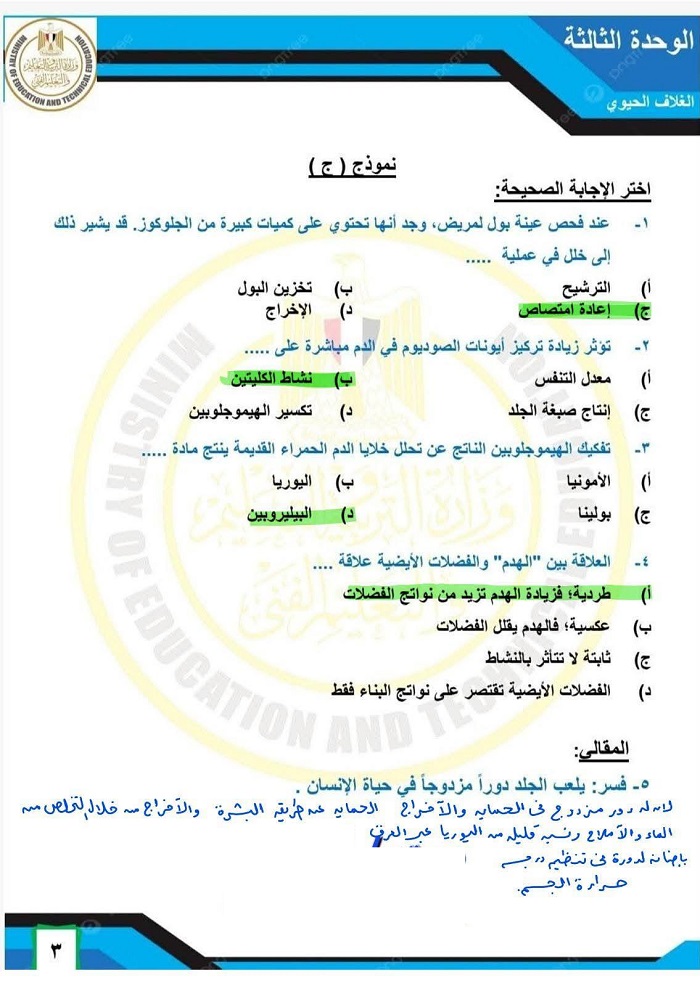 - اجابات التقييم الاسبوعي الخامس علوم متكاملة أولي ثانوي وبكالوريا ترم ثاني