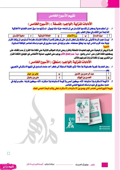 - الأسبوع الخامس تقييم أولى ثانوي الفلسفة والمنطق