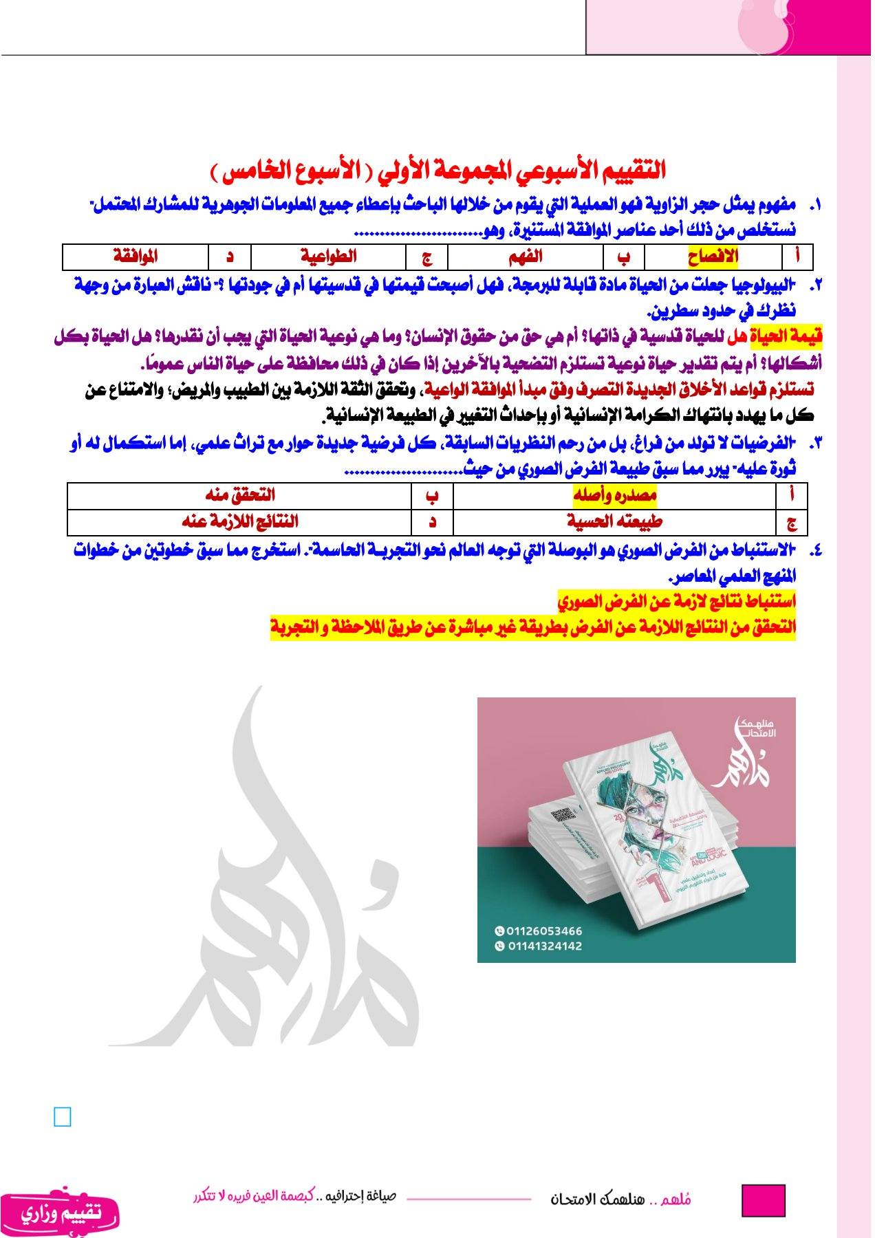 بالشرح والحلول.. التقييم الأسبوعي الخامس علوم متكاملة أولى ثانوي ترم ثاني