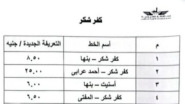 - تعريفة الركوب الجديدة في القليوبية 2026