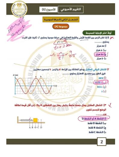 - إجابات تقييمات الأسبوع الخامس فيزياء ثاني ثانوي