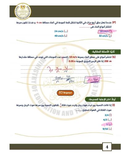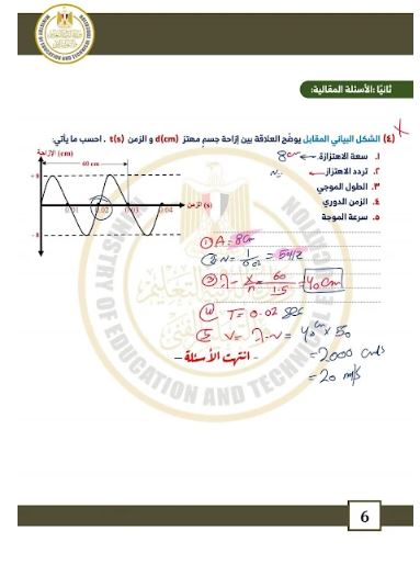- إجابات نموذجية فيزياء الصف الثاني الثانوي