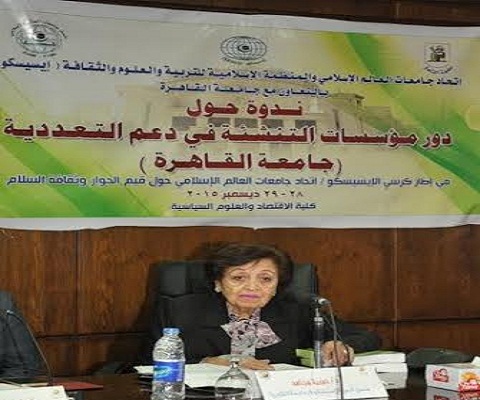 افتتحت صباح اليوم الإثنين 28ديسمبر 2015 فعاليات ندوة كرسي الإيسيسكو بجامعة القاهرة بعنوان "دور مؤسسات التنشئة في دعم التعددية"، تحت رعاية الدكتور جابر نصار، رئيس جامعة القاهرة، وبحضور الدكتورة هالة السعيد، عميد كلية الاقتصاد والعلوم السياسية، الدكتورة حورية مجاهد، منسق كرسي الإيسيسكو بجامعة القاهرة، الدكتور صلاح الدين الجعفراوي، ممثل منظمة الإيسيسكو، بالإضافة إلى لفيف من كبار الأساتذة المتخصصين في المجالات المختلفة سواء من داخل جامعة القاهرة وخارجها ومن المؤسسات الدينية الإسلامية والمسيحية.