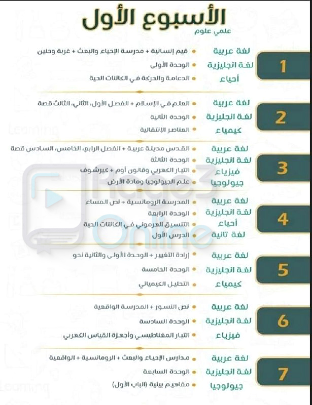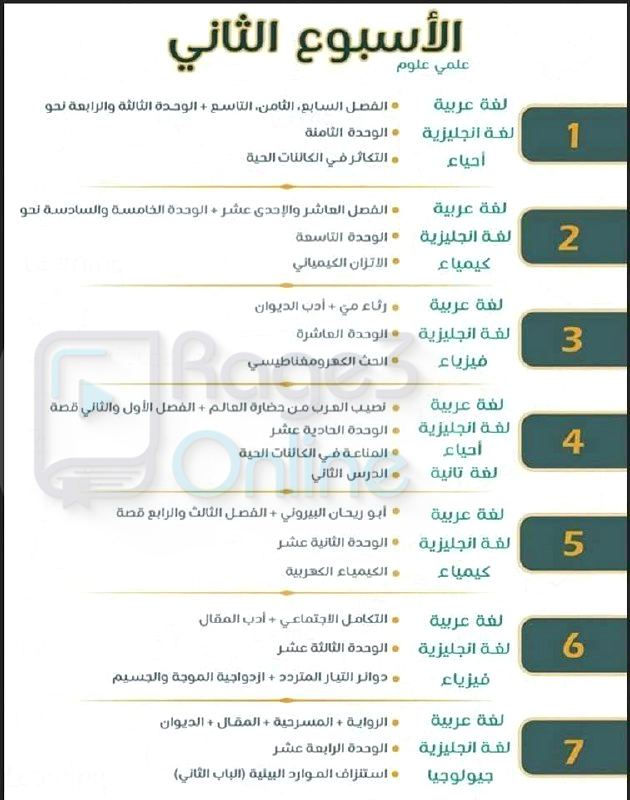 - مراجعة منهج علمي علوم في شهر