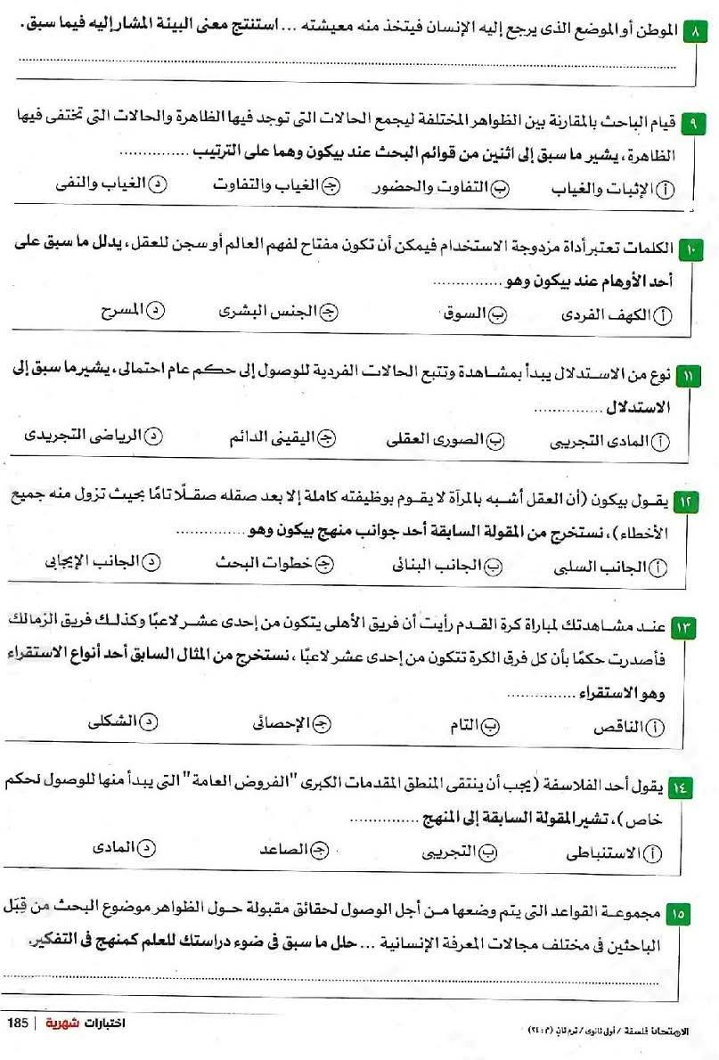 - نماذج امتحانات الفلسفة والمنطق بالإجابات