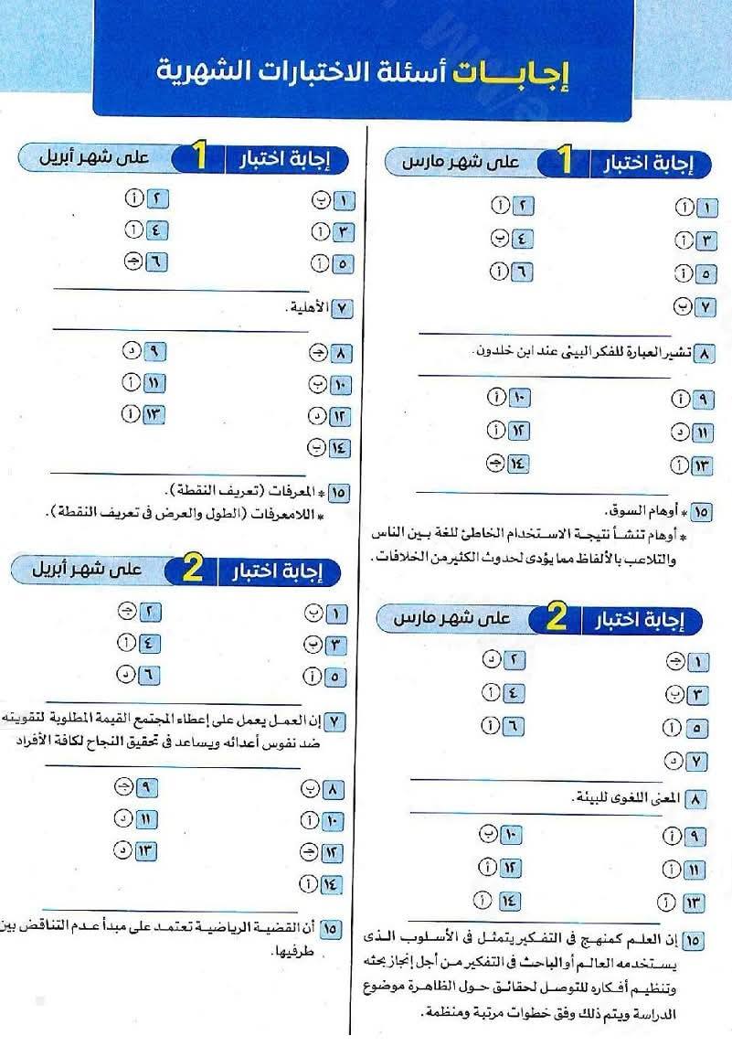 بالإجابات اختبارات فلسفة ومنطق للصف الأول الثانوي ترم تاني على مقرر شهر مارس