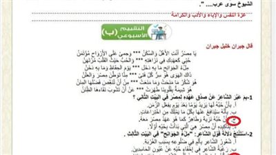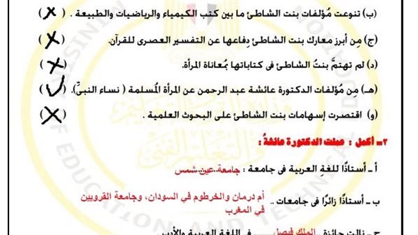 الاجابة النموذجية لأسئلة تقييم الأسبوع السادس لغة عربية ترم ثاني الصف الأول الثانوي