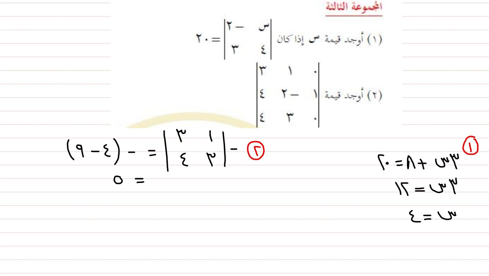 - حلول رياضيات أولى ثانوي