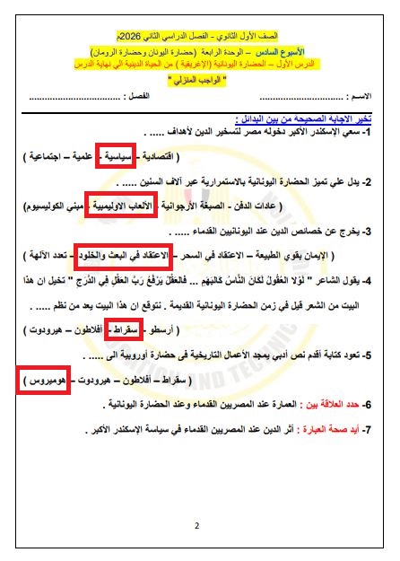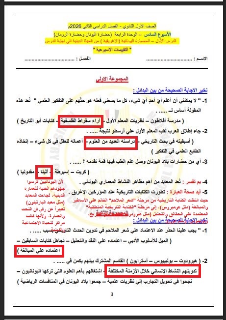 لطلاب اولى ثانوي.. بالإجابات تقييم الأسبوع السادس التاريخ ترم ثاني