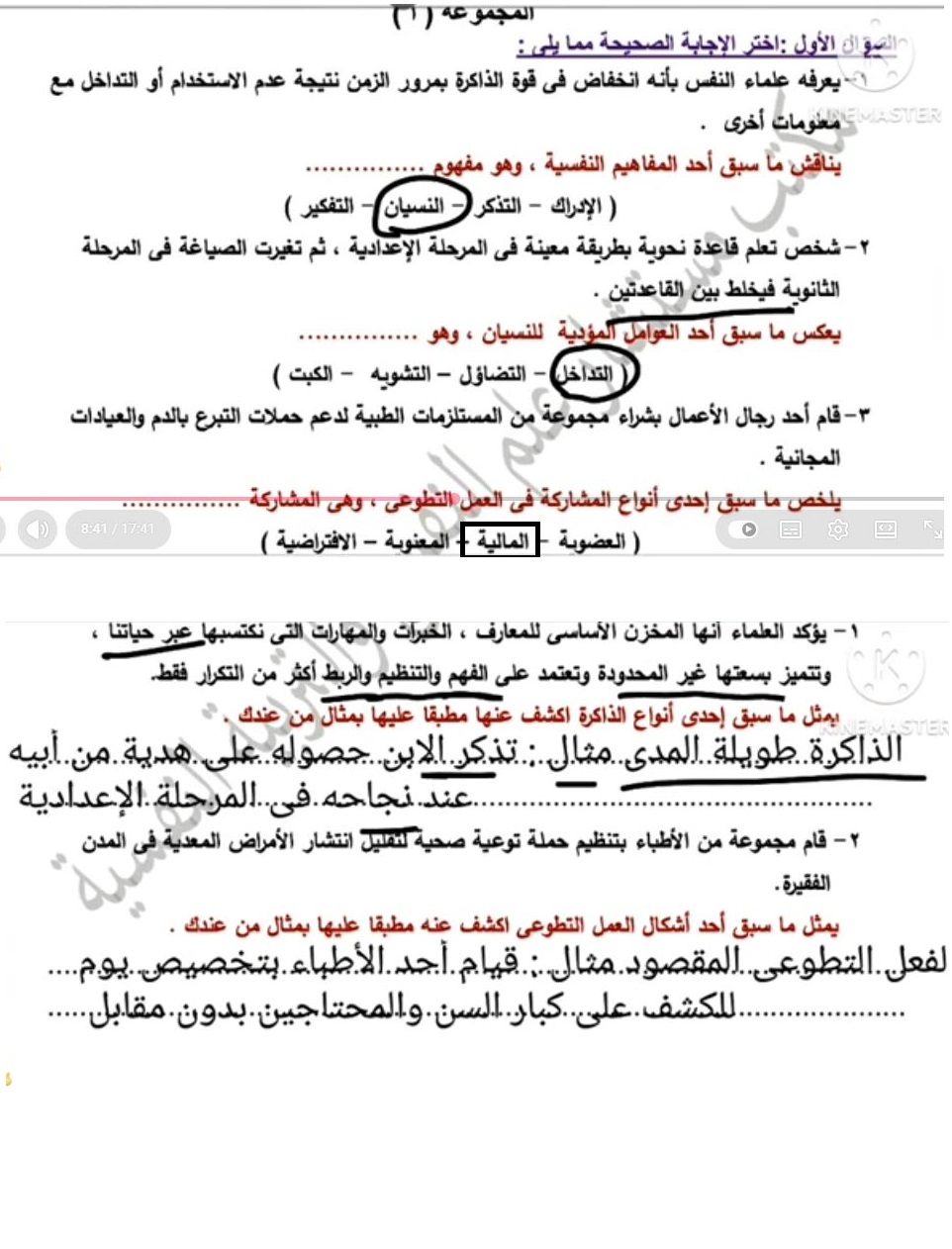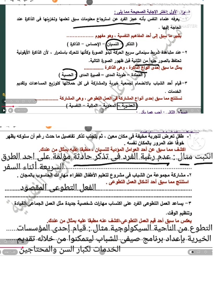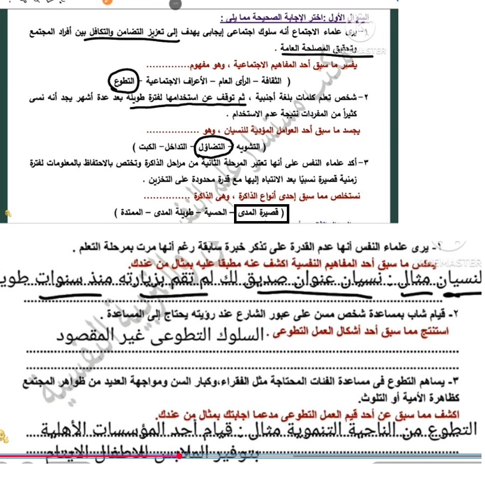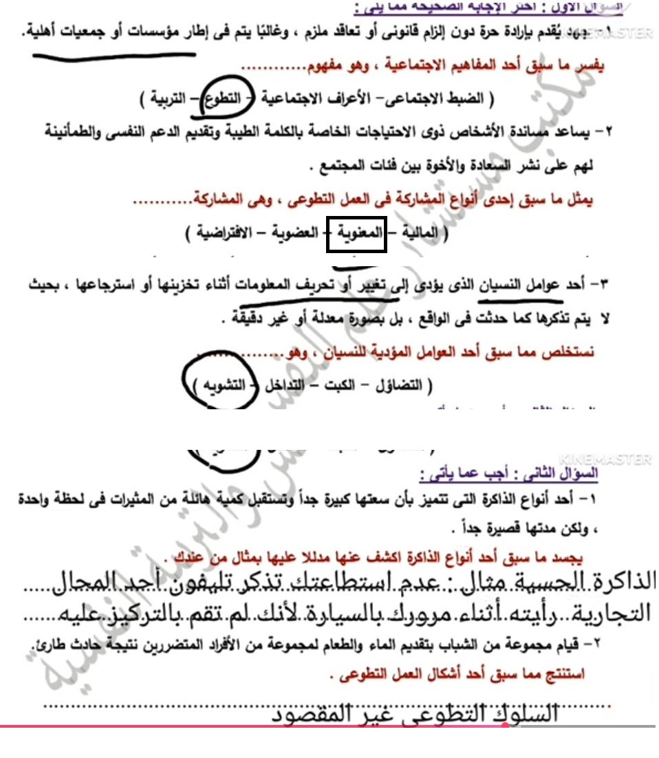 - حل أسئلة علم النفس والاجتماع تانية ثانوي ترم ثاني