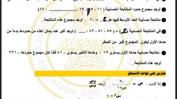 - تقييمات وزارة التربية والتعليم رياضيات 2026