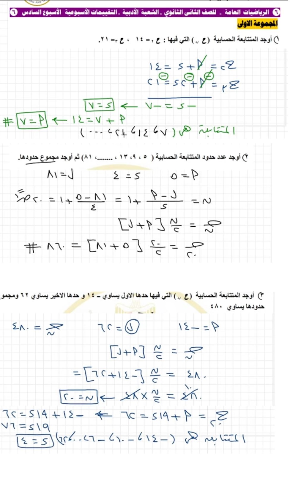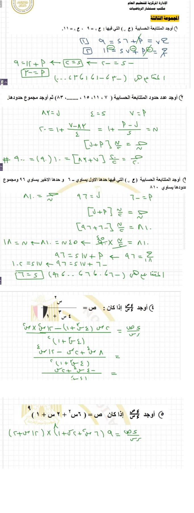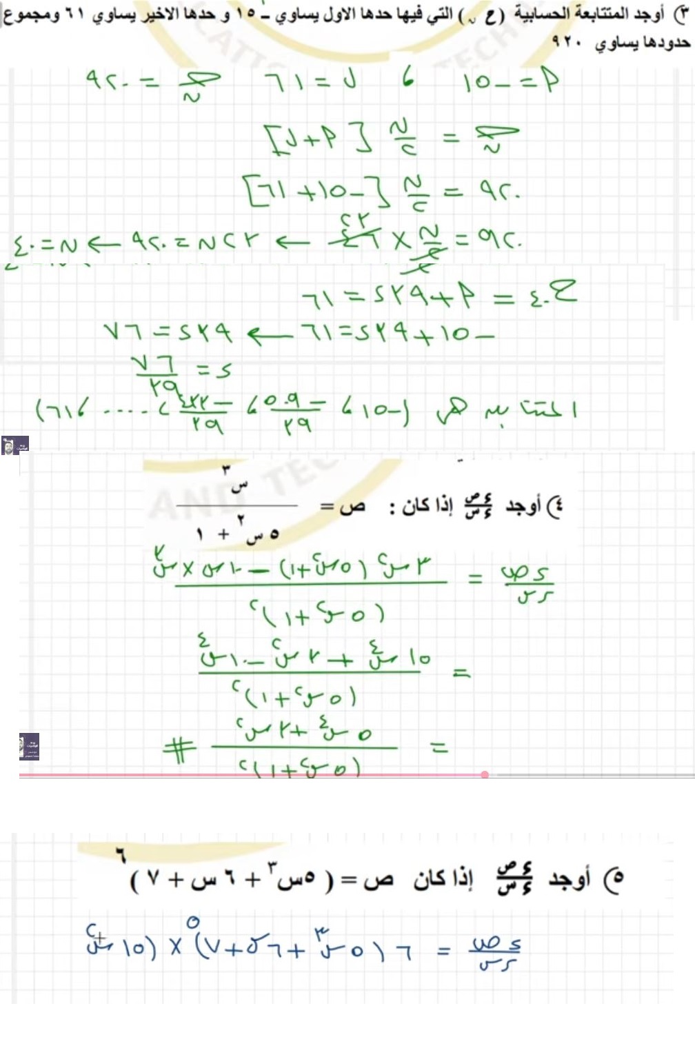 - مراجعات نهائيه امتحان الرياضيات العامة ثانية ثانوي