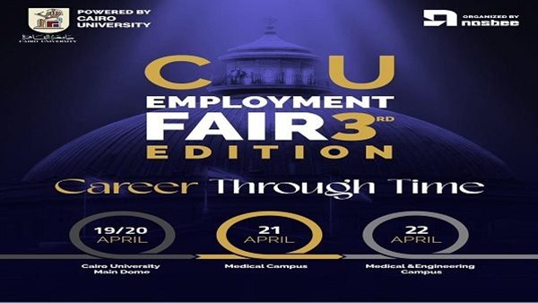 - إطلاق ملتقى التوظيف لطلاب جامعة القاهرة وخريجيها الجدد 19إبريل المقبل ويستمر 4أيام بمشاركة واسعة لكبرى الشركات والمؤسسات والبنوك.