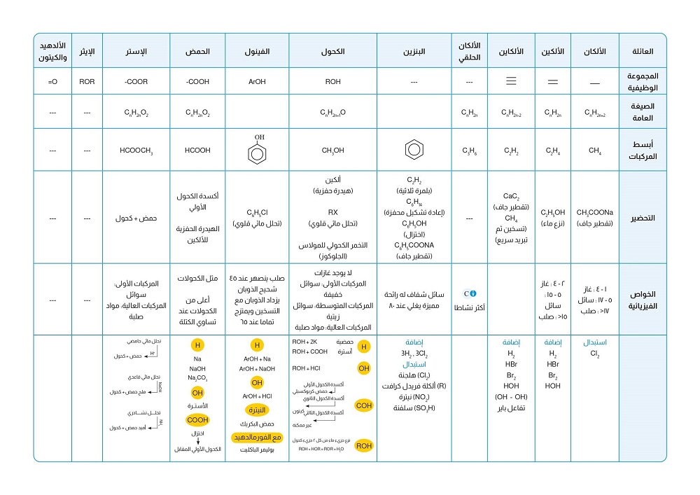 مخططات وجداول الكيمياء العضوية تضمن لك التفوق في الثانوية العامة 2026