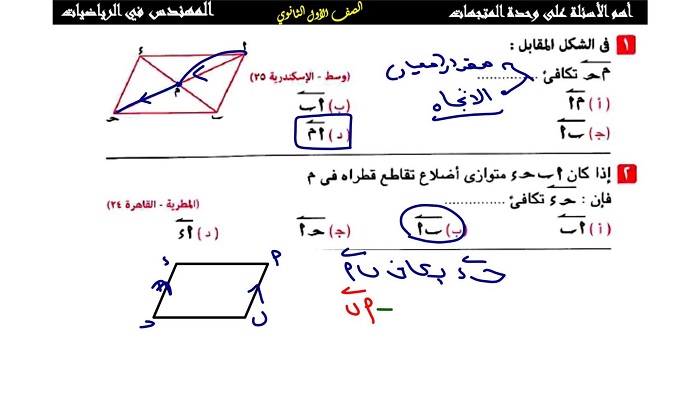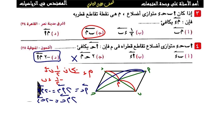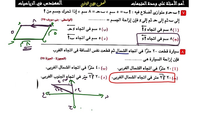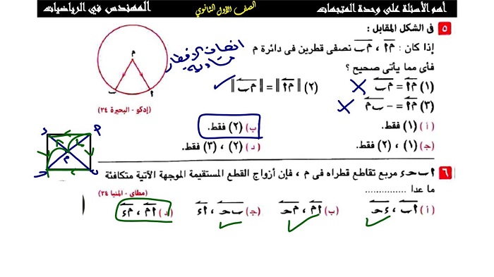 أبرز 20 سؤلا وإجابتها في الهندسة من امتحانات المحافظات للشهادة الإعدادية