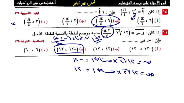 - مسائل فيثاغورس الشهادة الإعدادية