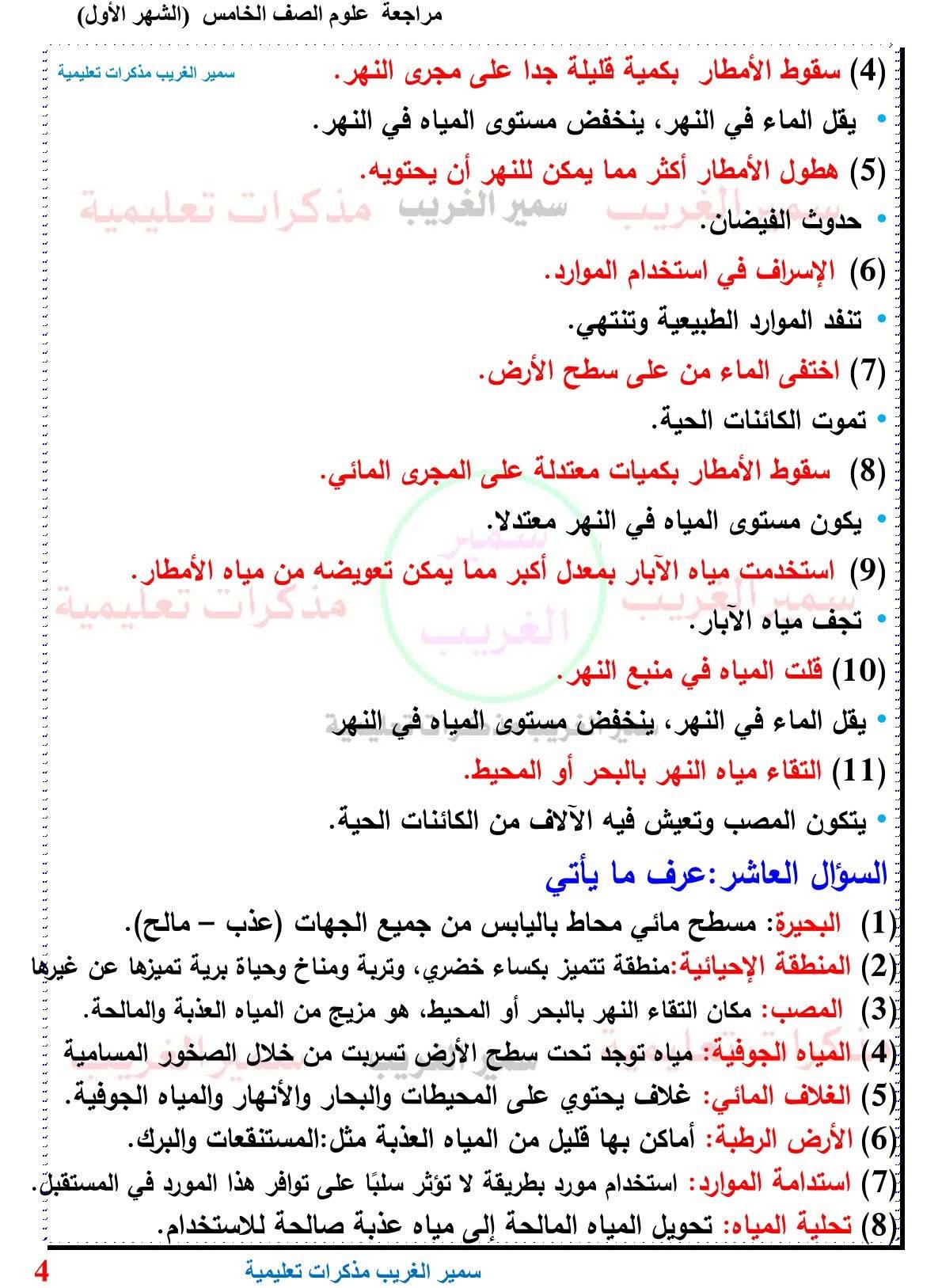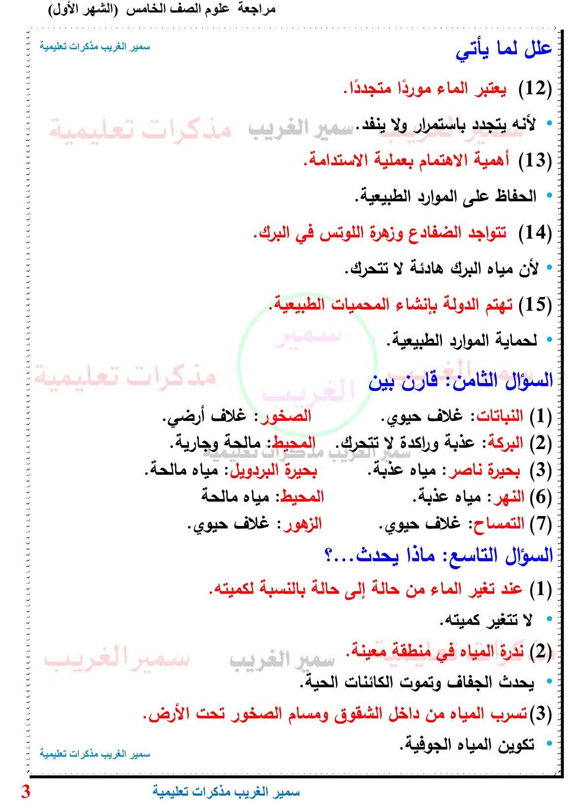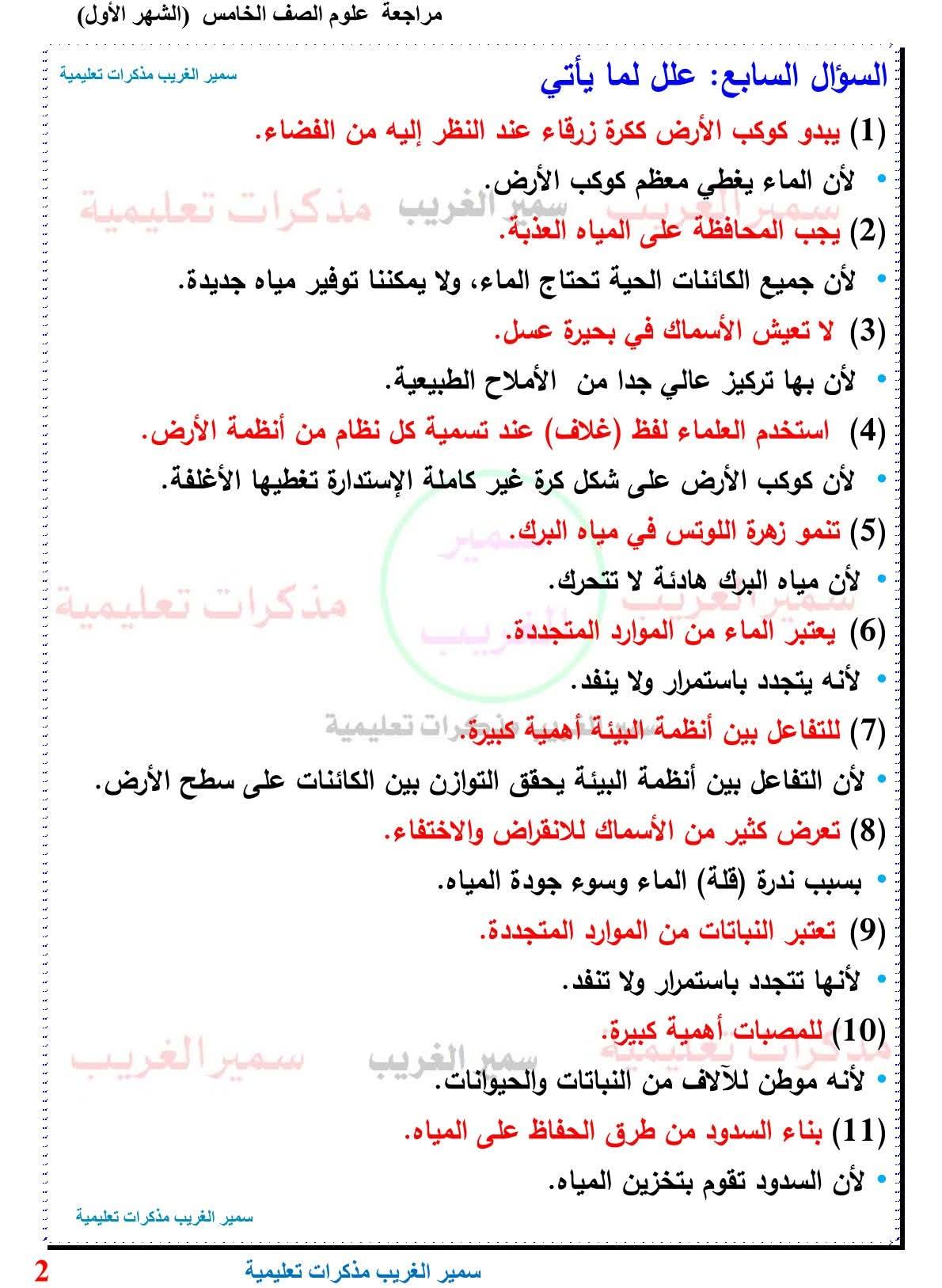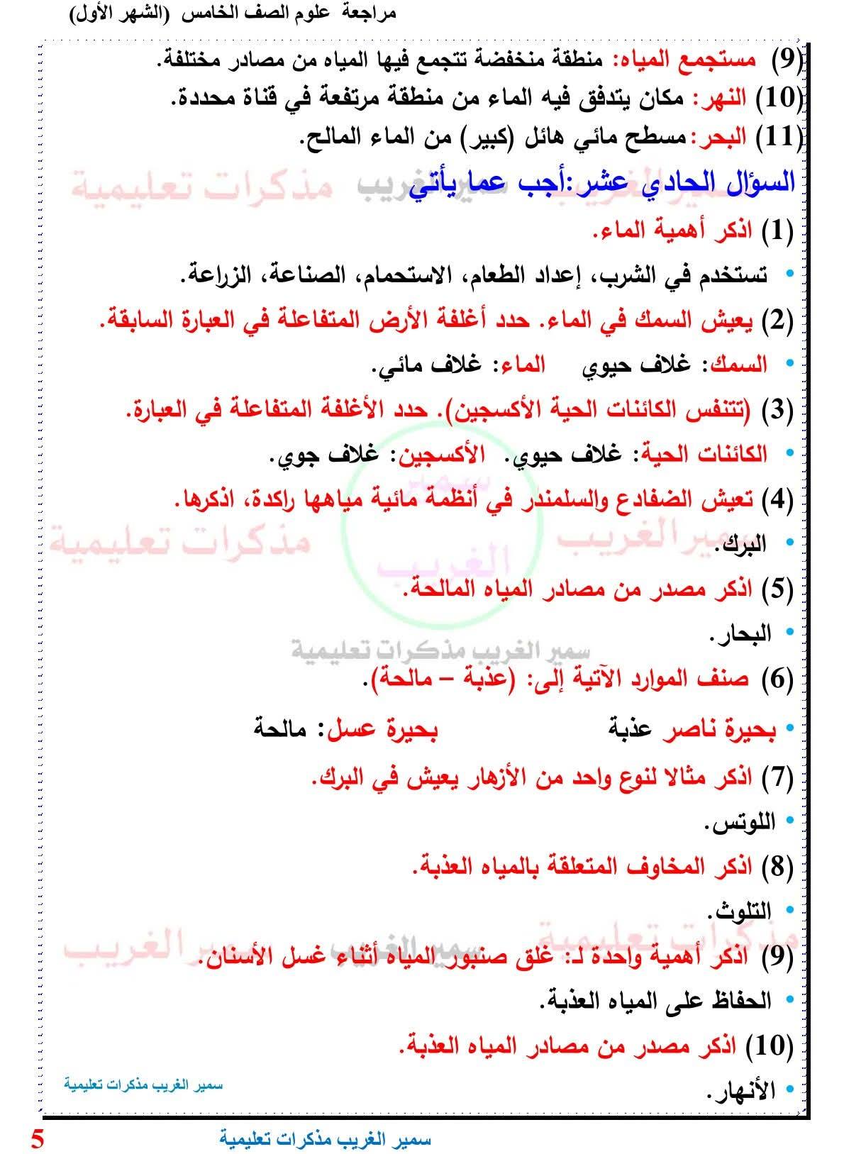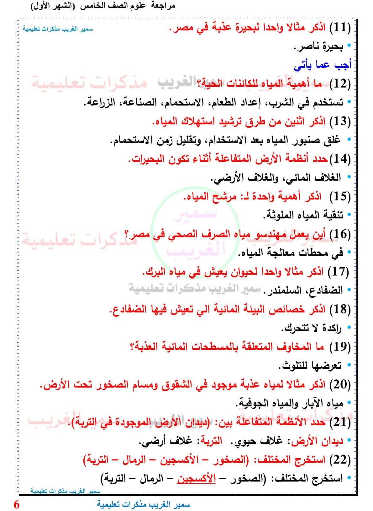 - مراجعة ليلة الامتحان علوم خامسة ابتدائي