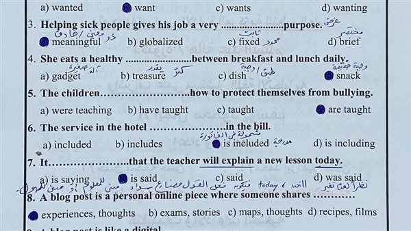 - أهم أسئلة انجليزي مع الحل