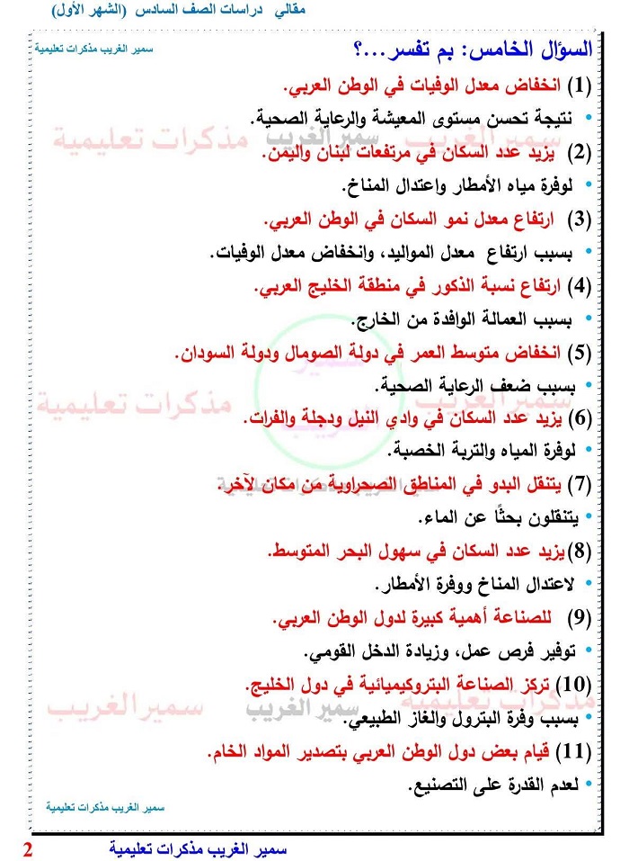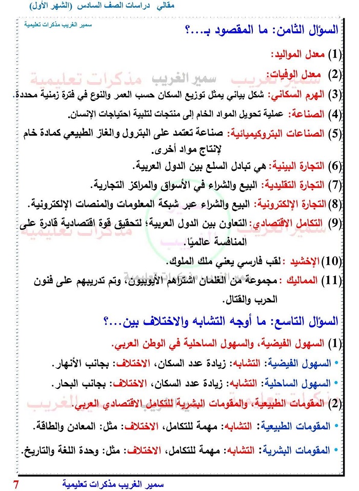 - أسئلة الجغرافيا والتاريخ سادسة ابتدائي