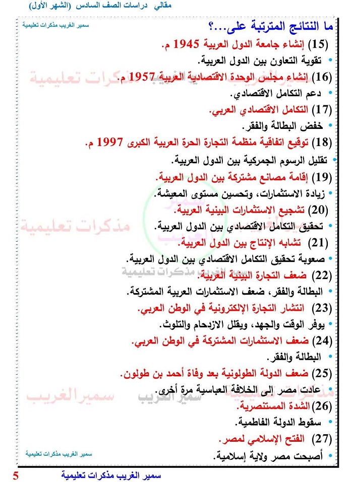 - مراجعة دراسات سادسة ابتدائي 2026