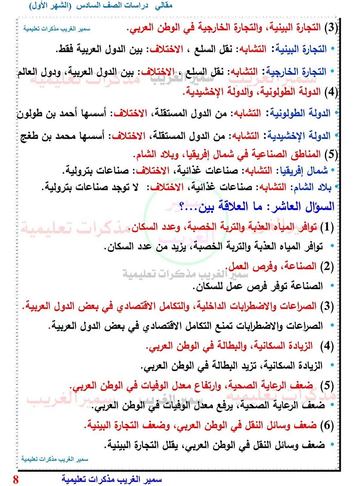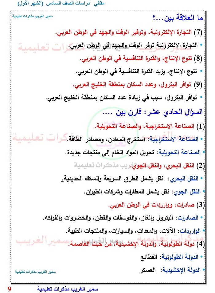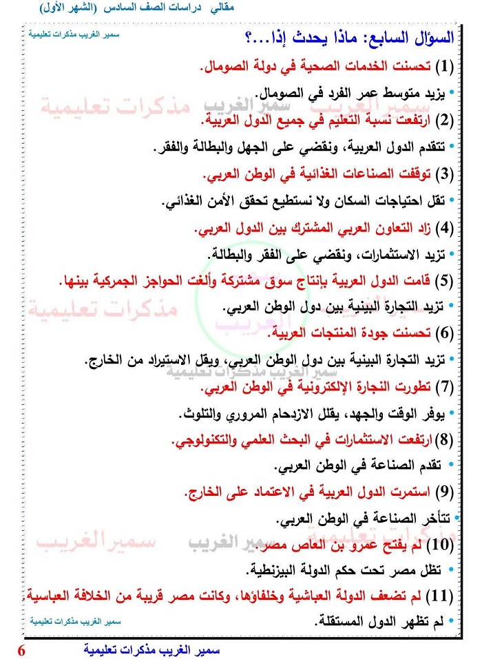 - مراجعة شاملة دراسات الصف السادس