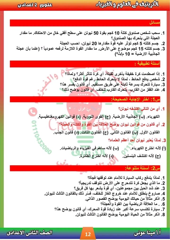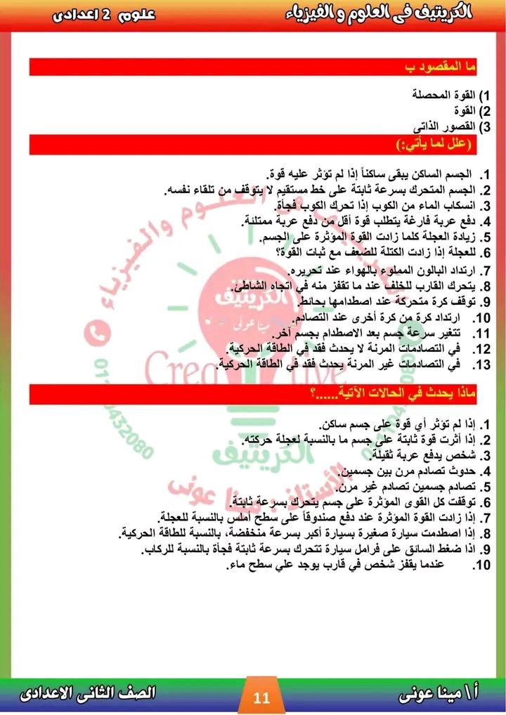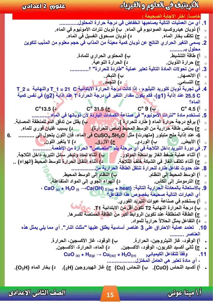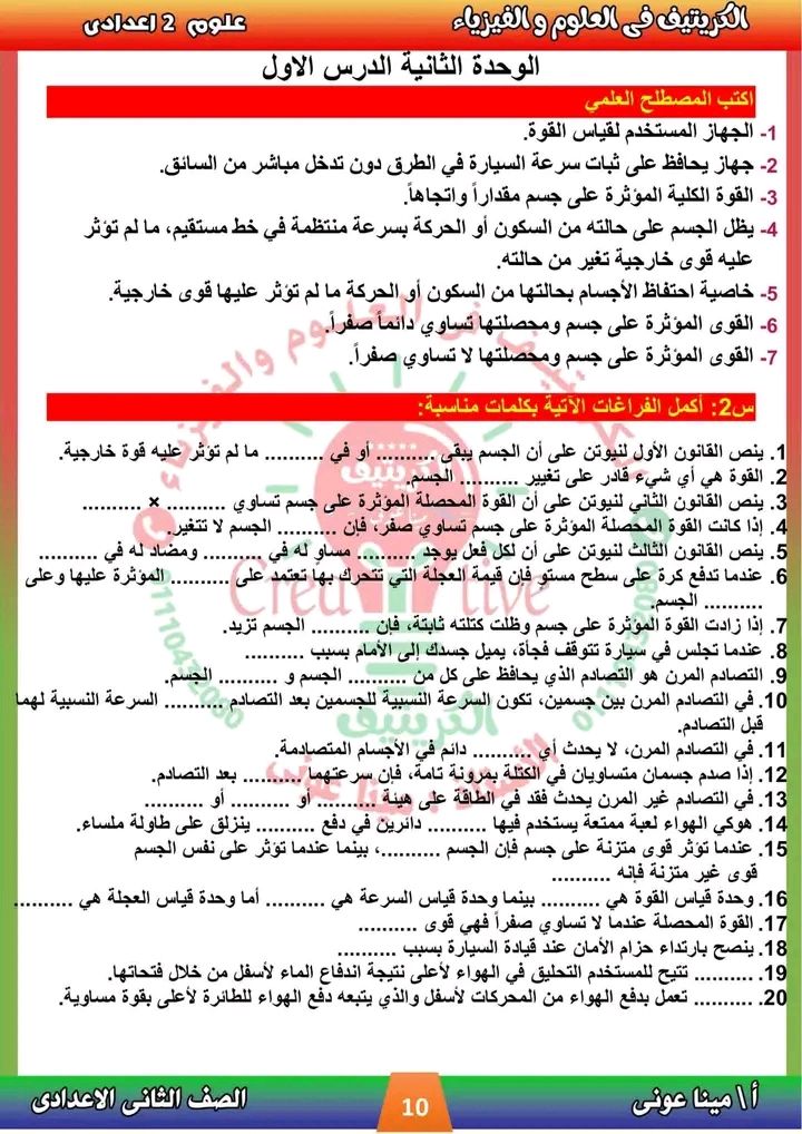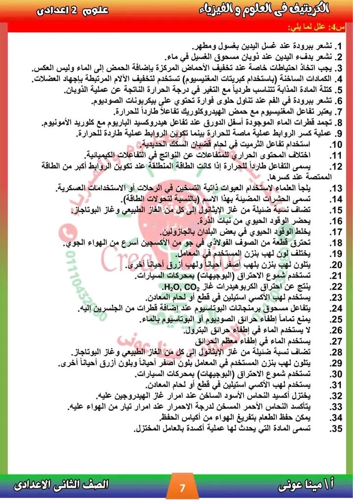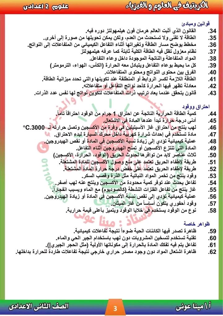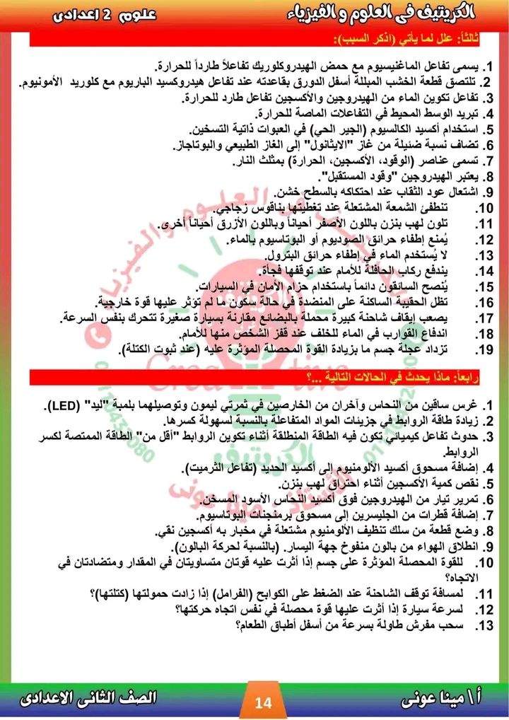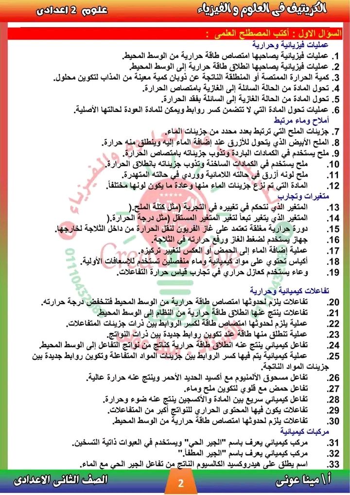 - مراجعات نهائيه امتحان العلوم ثانية إعدادي
