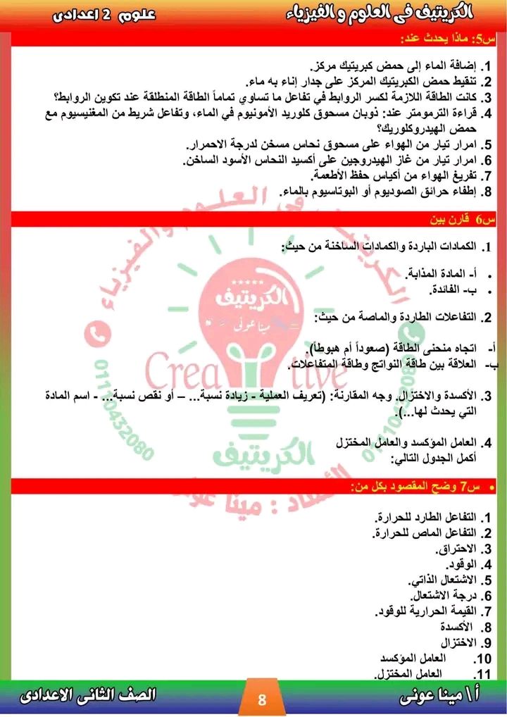 - حل أسئلة العلوم الصف الثاني الإعدادي