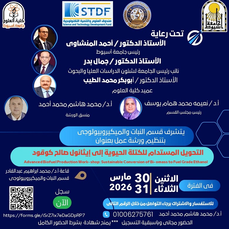 تركز الورشة على استعراض أحدث الابتكارات في تقنيات تحويل الكتلة الحيوية إلى إيثانول بطريقة صديقة للبيئة، بما يعزز جهود جامعة أسيوط في تطبيق الحلول العملية الداعمة للـاقتصاد الأخضر والطاقة المتجددة.