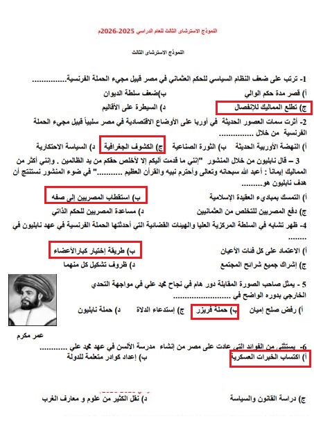 بالاجابات النموذج الاسترشادي الثالث تاريخ الثانوية العامة 2026