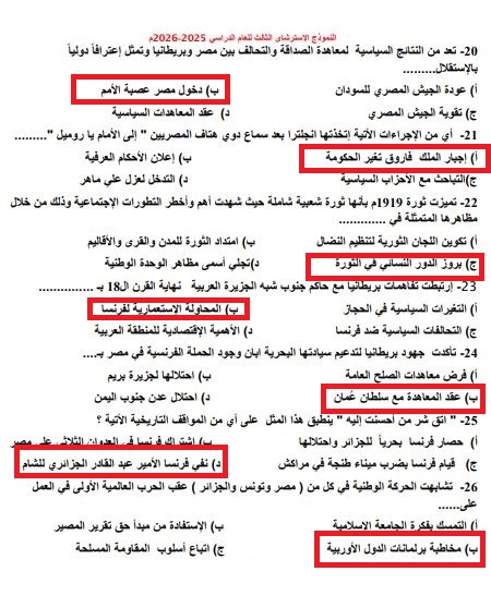 - امتحان التاريخ للثانوية العامة 2026
