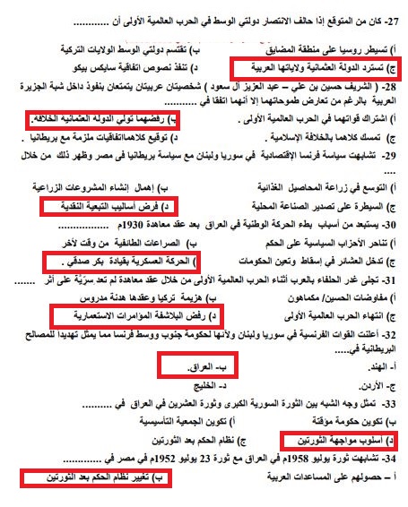 - حل امتحانات التاريخ للثانوية العامة