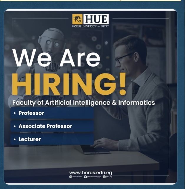 وظيفة جامعه.. تعلن جامعة حورس، عن حاجة كلية الذكاء الاصطناعي والمعلومات إلى فتح باب التقدم (تعيين- ندب كلي) لوظائف أعضاء هيئة التدريس من الحاصلين على درجة الدكتوراه (أستاذ -أستاذ مساعد - مدرس)، وعلى الراغبين في الحصول على وظائف جامعة حورس، التقديم عبر موقع جامعة حورس على شبكة الانترنت، والتقديم متاح الآن علما بأن آخر موعد للتقديم هو يوم 2 أبريل المقبل.