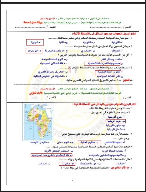 احصل على الحل النموذجي لتقييم الأسبوع السابع جغرافيا التنمية للصف الثاني الثانوي