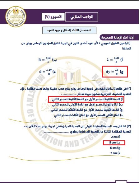 الدرجات مضمونة.. الحل الكامل لتقييم الأسبوع السابع الفيزياء ثانية ثانوي 2026