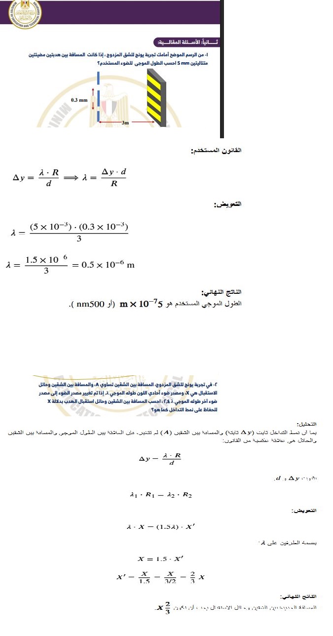 - إجابات نموذجية تقييم الفيزياء الصف الثاني الثانوي