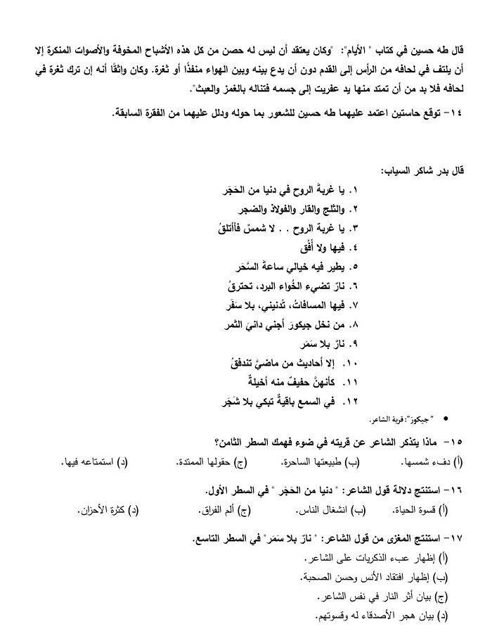 - أسئلة اللغة العربية ثانوية عامة 2026