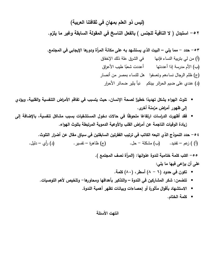55- إجابة السؤال (٥٥): الكلمة الختامية لندوة (المرأة نصف المجتمع)