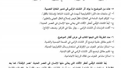 - إجابة النموذج الاسترشادي الرابع عربي 2026