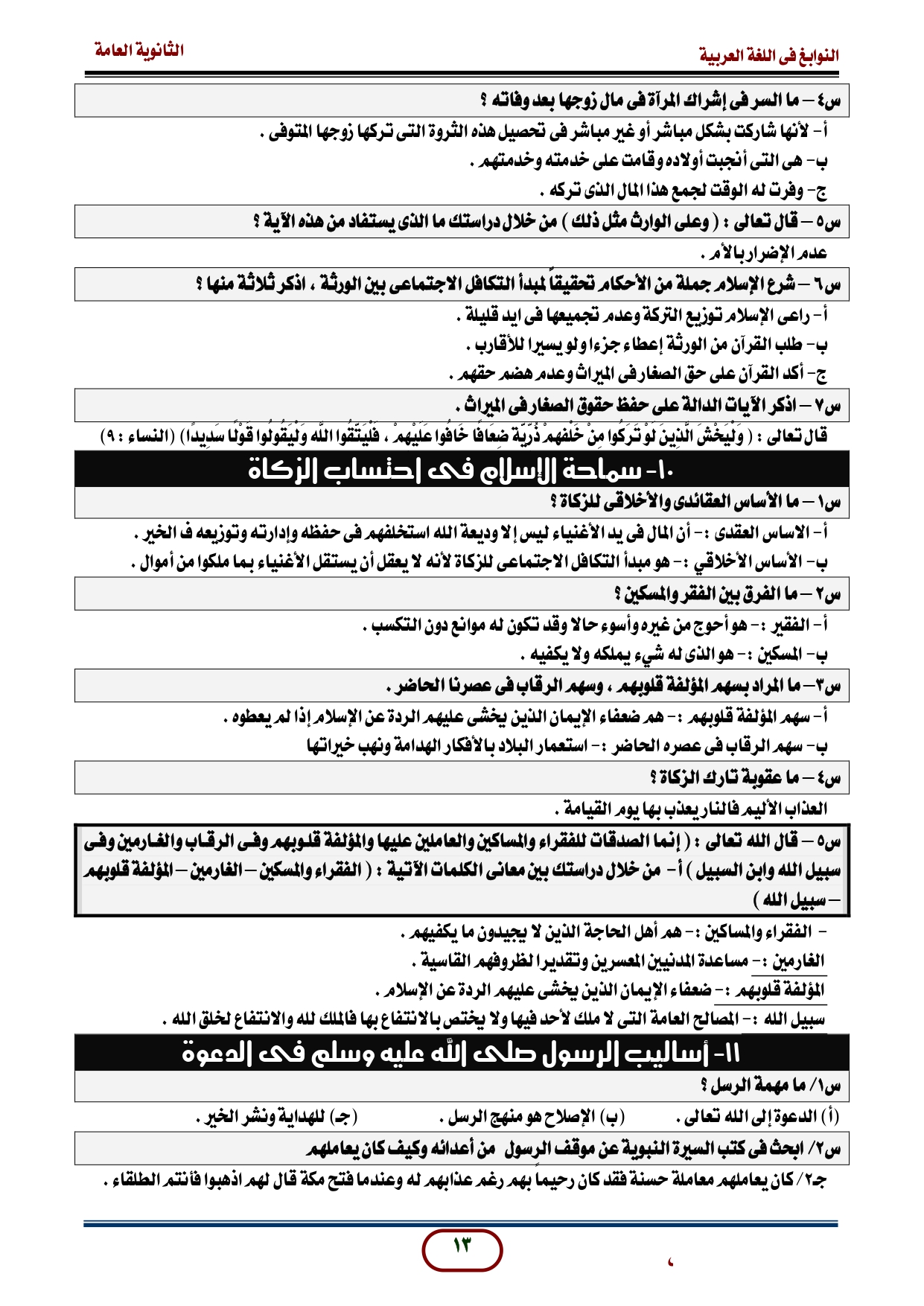 - مراجعة التربية الإسلامية للثانوية العامة 2026