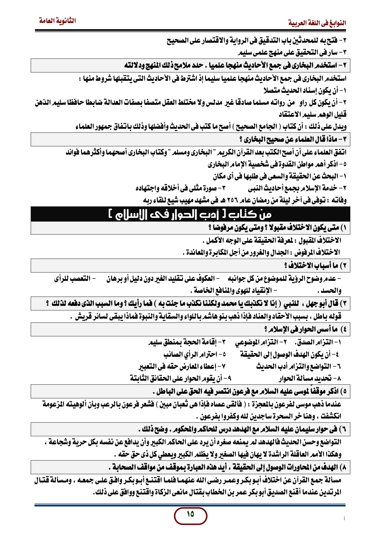 - المراجعة النهائية في التربية الاسلامية 15 ورقة