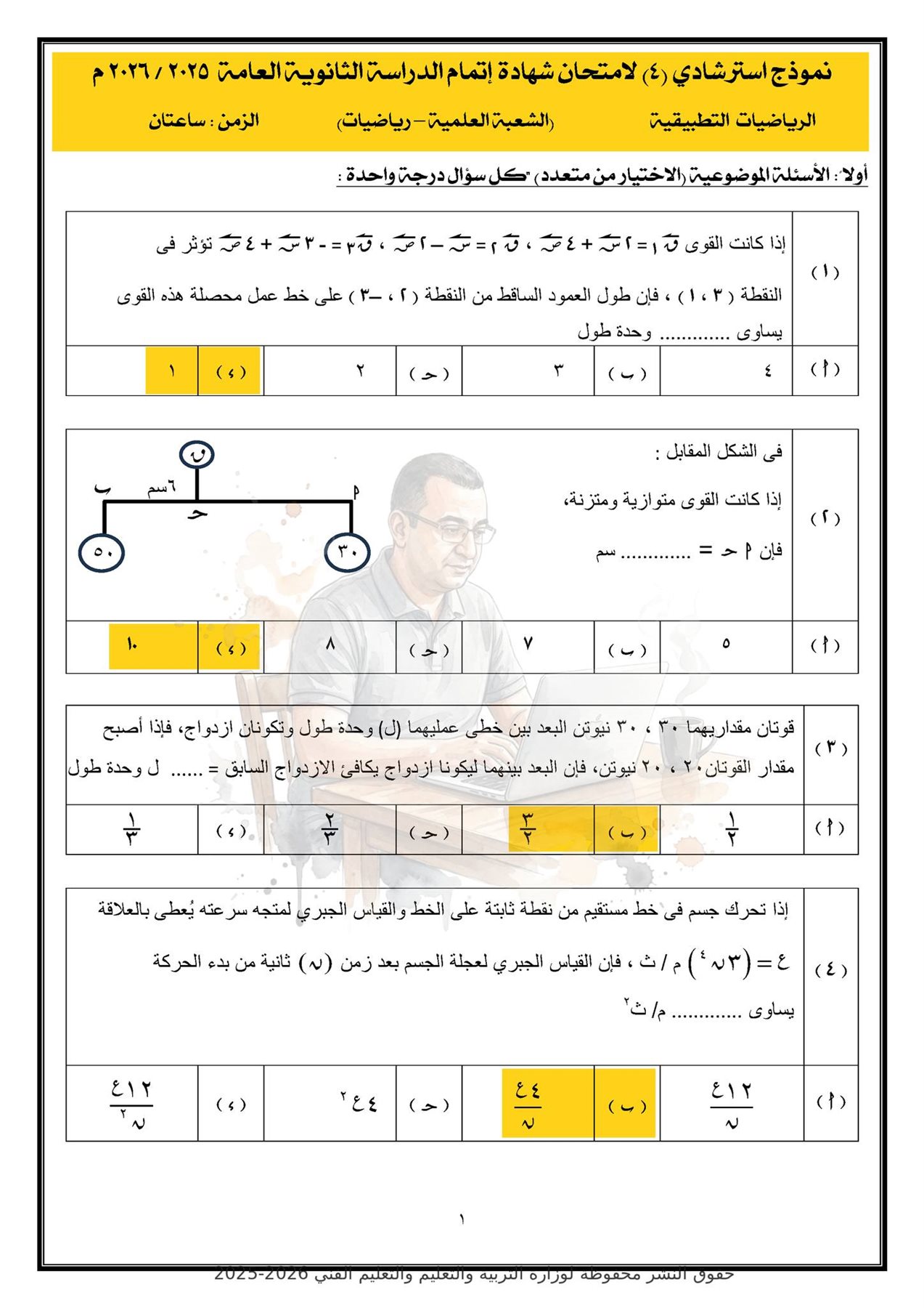 لـ طلاب الثانوية العامة 2026.. إجابة النموذج الاسترشادي الرابع في الرياضيات التطبيقية
