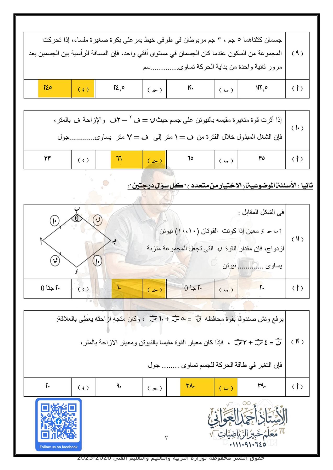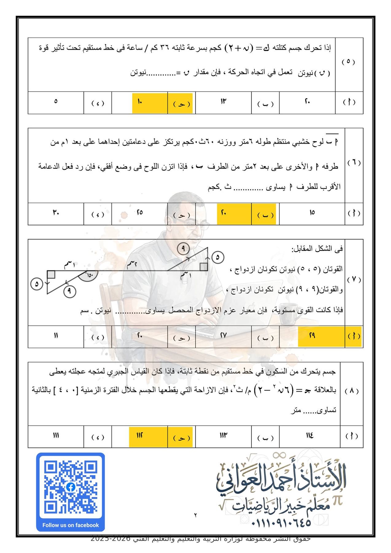 إجابة النموذج الاسترشادي الرابع في الرياضيات التطبيقية.. جاءت إجابة النموذج الاسترشادي الرابع شاملة لكافة الأسئلة، حيث تضمنت مسائل في فروع الرياضيات التطبيقية المختلفة مثل الاستاتيكا والديناميكا، مع الاعتماد على خطوات الحل المنظمة التي تساعد الطالب على فهم طريقة التفكير وليس مجرد الوصول إلى النتيجة.