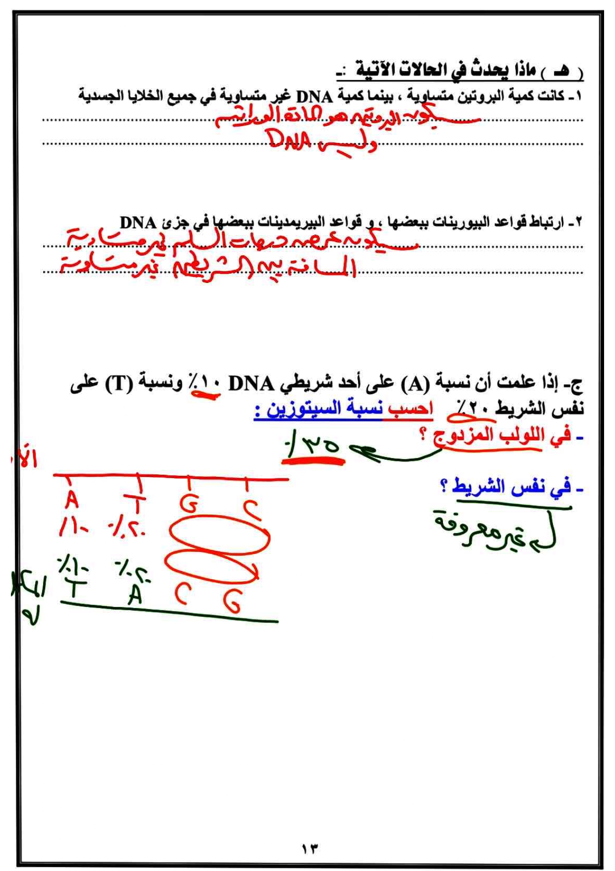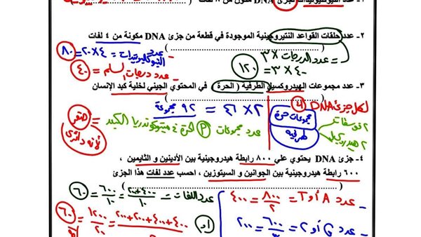 أبرز مسائل DNA للثانوية العامة.. ويستهدف هذا الملف مساعدة الطلاب على إتقان جزئية الوراثة الجزيئية، والتي تعد من أكثر الأجزاء التي تحتاج إلى تدريب مكثف وفهم عميق، خاصة فيما يتعلق بحساب عدد الروابط، وتحديد تسلسل القواعد النيتروجينية، واستخراج المعلومات من الشفرات الوراثية.