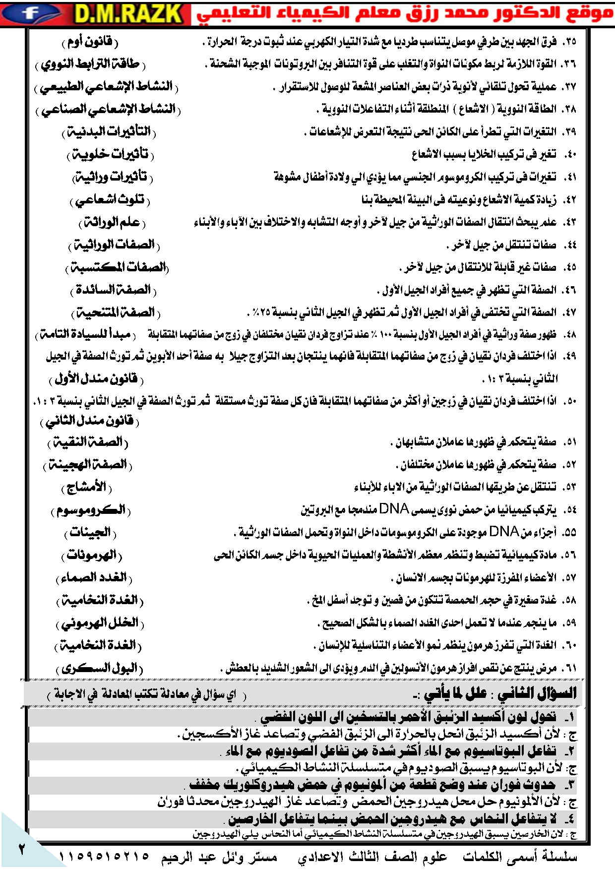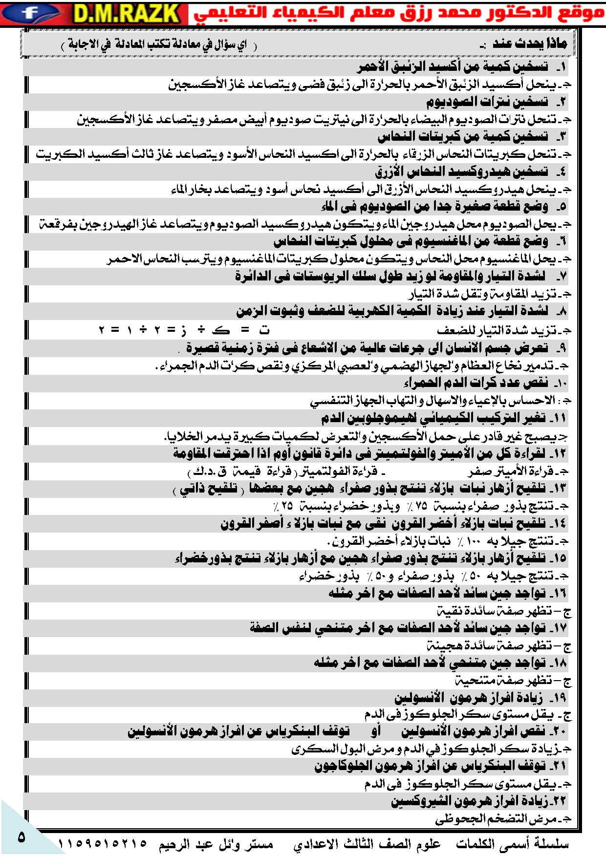 - بنك أسئلة علوم ثالثة إعدادي لن يخرج عنها الامتحان