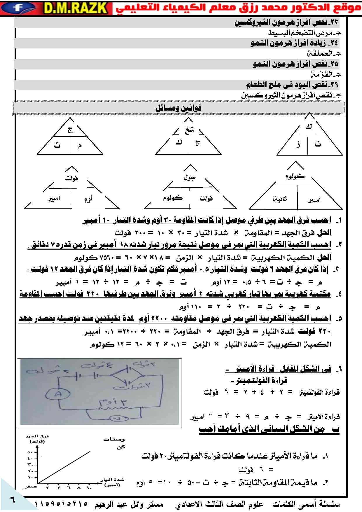 - مراجعة ليلة الامتحان علوم ثالثة إعدادي