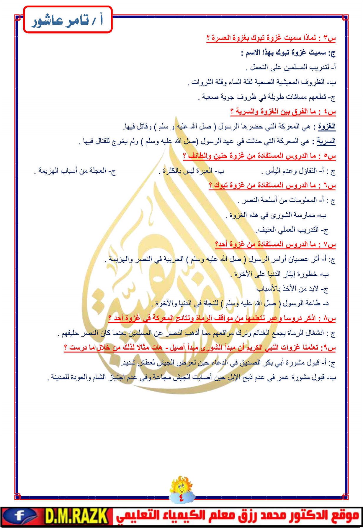 - أهم أسئلة التربية الإسلامية ثالثة إعدادي