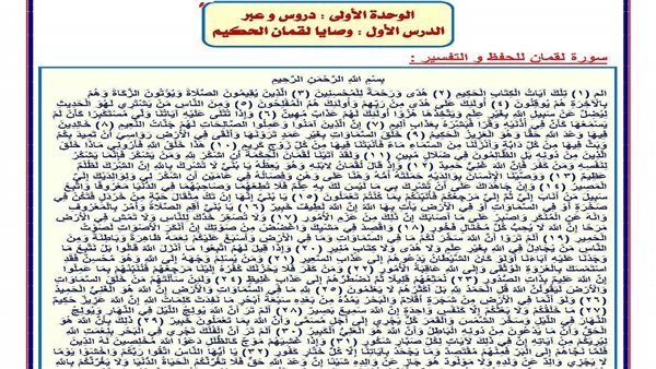 - تفسير آيات التربية الإسلامية إعدادي