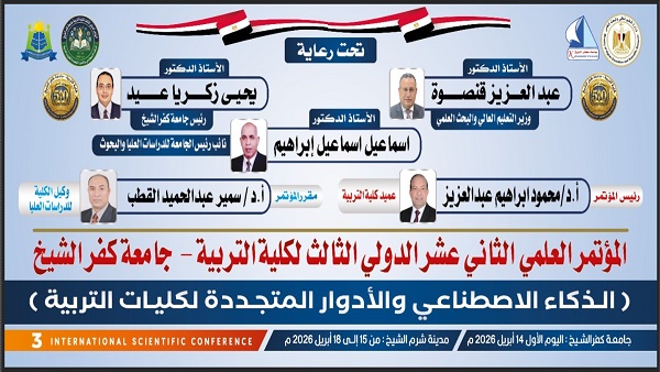 تستعد جامعة كفر الشيخ لانطلاق فعاليات مؤتمر كلية التربية جامعة كفر الشيخ العلمي الثاني عشر والدولي الثالث تحت عنوان الذكاء الاصطناعي في التعليم ومستقبل كليات التربية، خلال الفترة من 14 إلى 18 أبريل 2026، في إطار دعم التعليم العالي في مصر 2030 وتعزيز التحول الرقمي في التعليم العالي وربط البحث العلمي بمتطلبات التطوير، وتأتي هذه الفعاليات في سياق دعم تطوير التعليم الجامعي في مصر والتعليم الرقمي في الجامعات العربية.